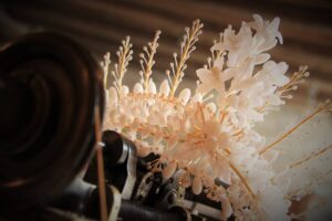 Depuis des siècles, la fleur d’oranger est associée aux noces et à la pureté. Mais derrière ce délicat symbole se cache un savoir-faire fascinant et méconnu : la fabrication des parures de mariage en fleurs d’oranger cirées, qui ornaient autrefois les coiffures des mariées et prenaient place sous les globes de mariée après la cérémonie.